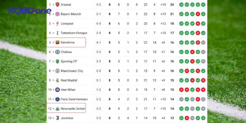 Theo soi kèo trận Newcastle United vs Barcelona, gã khổng lồ xứ Catalan thống trị ngôi đầu bảng với 22 bàn thắng sau 8 trận. Barcelona đang thăng hoa rực rỡ khi sở hữu 5 chiến thắng cùng hiệu suất tấn công khủng khiếp 2.75 bàn mỗi trận.
